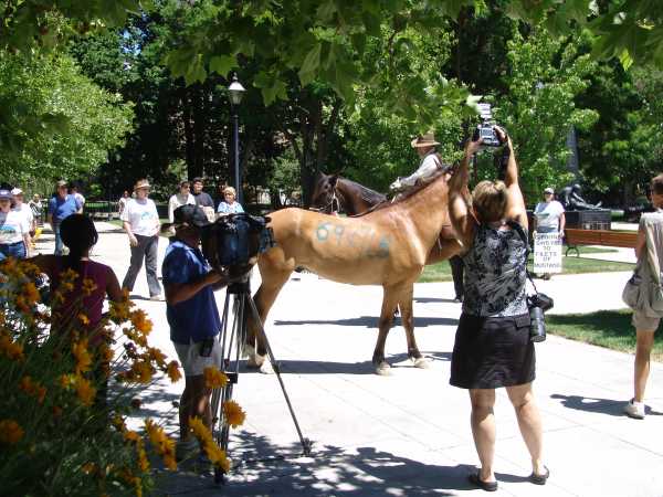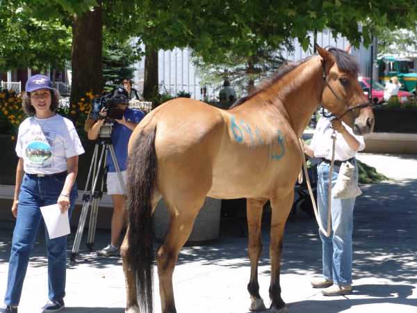 The purpose of the gathering was two fold. One objective was to bring and deliver hundreds of letters in support of wild horses written by children and adults. The other was to point out the various problems associated with Senator Reid's new bill,