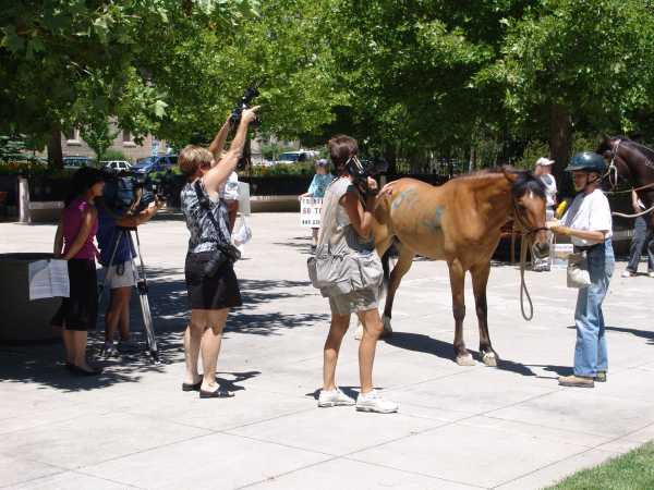 The purpose of the gathering was two fold. One objective was to bring and deliver hundreds of letters in support of wild horses written by children and adults. The other was to point out the various problems associated with Senator Reid's new bill,