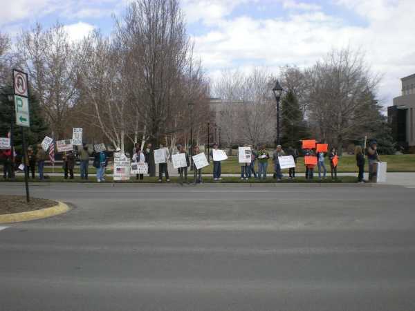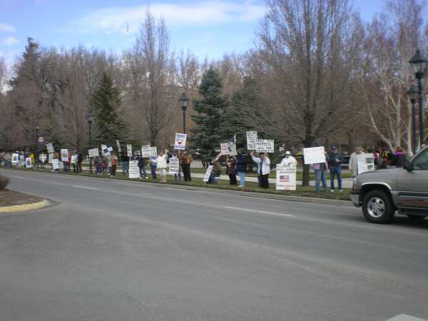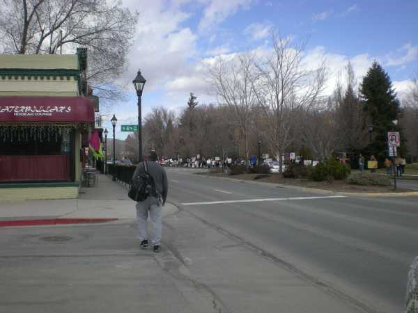 The grassy strip between the sidewalk and Carson Street was lined with participants along the entire frontage of the State Legislature and the Capitol plaza, some four blocks.