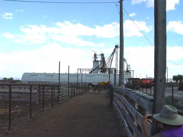 Earlier that morning Mike Holmes was working hard to get Nick Illia's stock yard ready to receive over 150 horses. Nick Illia owns a rustic but very serviceable yard on the south side of Fallon. He is a stockman who is very cordial to the horse advocates and made his facility available for these horses pretty much at his costs.