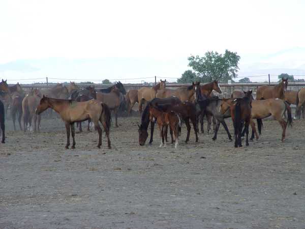 The parking lot was full of cars and trailers. On the north side of the lot was the wild horse advocates' convoy of trailers. On the south side were the kill buyers' trailers.