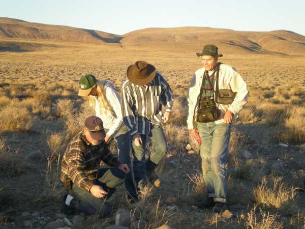 Wildlife Ecologist Craig Downer (right) teaches volunteers how to identify and evaluate range grasses.